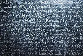 Vers , les scribes adoptent l'écriture démotique qui est une écriture cursive plus claire et plus rapide à écrire que les hiéroglyphes. Elle figure sur la pierre de Rosette grâce à laquelle les hiéroglyphes ont pu être déchiffrés par Champollion en 1822[43].