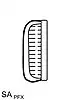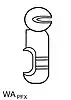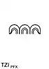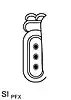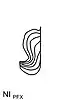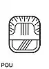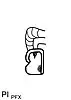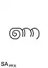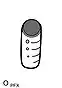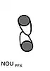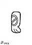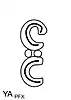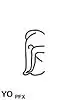 En dessous de chaque glyphe à gauche, sa prononciation (PFX=préfixe, SFX=suffixe)[23]