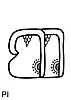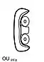 - Les glyphes sont transcrits en caractères gras, chaque glyphe étant séparé de ses voisins par un trait d'union.