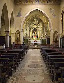 Derrière le maître-autel se trouvent des stalles en bois, œuvre du début du XVIe siècle de Bernardino de Ronchiis ; au centre du cercle des stalles, il y a un lutrin à pied de marbre ; accroché au mur, Les martyrs de Nagasaki, œuvre de jeunesse de Francesco Maffei[17].
