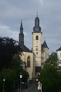 L'église est le plus ancien site religieux existant à Luxembourg-ville[1]. La première église fut construite au même endroit en 987 comme chapelle castrale pour le Comté de Luxembourg[2]. Cependant, au cours des siècles suivants, le bâtiment est détruit, reconstruit et rénové à plusieurs reprises[1]. Son aspect actuel date de 1688 et unit les styles architecturaux roman et baroque. Le bâtiment a été restauré depuis, en conservant sa forme d'origine, notamment dans les années 60, 80 et 2003 – 2004.
