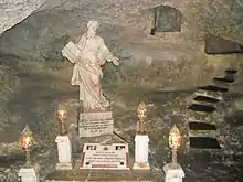 Sur la droite en dessous de l'église se trouve la grotte de Paul. C'est l'un des lieux de l'île qui commémore le naufrage de Paul et de ses compagnons lors de la traversée vers Rome et son séjour de trois mois à Malte. La tradition l'appelle le lieu où l'apôtre a vécu, enseigné et célébré la Messe pendant cette période.