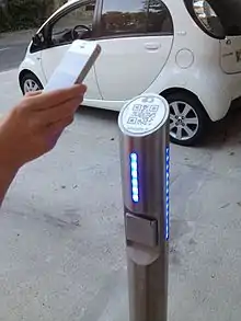- Un partage des places sans interdiction ni marquage au sol, mais avec une borne de recharge qui fait fonction de parcmètre et donc facture le stationnement aux véhicules non-rechargeables.