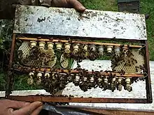 - La préparation d'une ruche(tte) d'élevage : c'est la création d'une colonie orpheline qui sera en mesure d'accueillir les larves destinées à être élevées. Elle doit contenir suffisamment de miel et de pollen, et être pourvue d'abeilles jeunes, voire de couvain naissant.