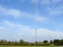 Pour les transmissions en radio AM, un mât haubané en cadre à tubes d'acier est utilisé[4]. Ce mât est isolé de la terre et est conçu pour limiter le fading aérien, avec des points d'émission multiple. Par conséquent, il est isolé aux hauteurs de 56 et de 117 mètres par un isolateur.