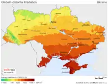 Les réserves prouvées de gaz naturel de l'Ukraine étaient estimées par BGR à 1 104 Gm3 fin 2020, soit 0,5 % des réserves mondiales ; BGR estiment les ressources ultimes supplémentaires à 4 495 Gm3[r 4]. L'Ukraine était en 2014 au 3e rang européen pour ces réserves derrière la Norvège et les Pays-Bas[a 1]. Avec l'exploitation du gaz de Crimée, comme le champ de gaz de Djankoï, est créé le gazoduc Kherson-Armyansk-Djankoï-Simferopol pour connecter la Crimée au continent.