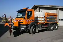 Les épandeuses peuvent être répertoriées en fonction de leur position sur le camion porteur.