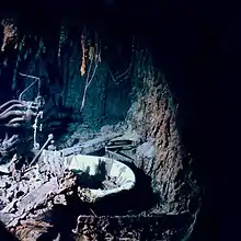 La dégradation de l'épave est également due à des causes naturelles telles que les courants marins. Cette détérioration est exponentielle. Les prévisions des scientifiques varient, mais ils considèrent que l'épave aura globalement disparu entre 2025 et 2050[75]. Depuis 2011 et une nouvelle exploration durant laquelle le site a totalement été cartographié, une nouvelle menace est apparue. Il apparaît en effet que de nombreux et massifs bancs de sable apparaissent au nord-est du site, et se rapprochent de l'épave. La proue serait la partie de l'épave la première concernée par cette menace. Cela rappelle notamment qu'elle avait failli être détruite par une violente tempête sous-marine en 1929[11], qui avait notamment sectionné tous les câbles téléphoniques transatlantiques de la région[36][source insuffisante]. Durant l'été 2016, à l'aide d'une technique d'imagerie par rayonnement à neutrons, une équipe de chercheurs de l'Institut Laue-Langevin met en évidence qu'une molécule appelée éctoïne est utilisée par la bactérie Halomonas titanicae dans l'épave du Titanic afin de survivre à la pression osmotique que provoque le sel de l'eau sur ses membranes[76],[77]. Cette bactérie qui ronge les restes du paquebot devrait faire disparaître progressivement l'épave à l'horizon de 2030[78].