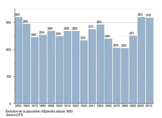 Le graphique suivant résume l'évolution de la population d'Épendes entre 1850 et 2010[9] :