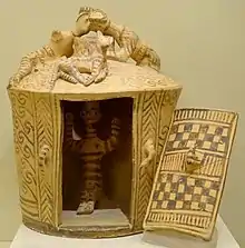 Maquette attique de greniers à céréales dans la tombe d'une femme. Vers 850. Musée de l'Agora antique d'Athènes[24]
