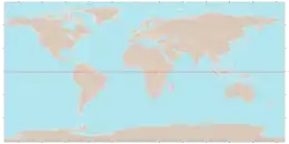 Sur Terre, l'équateur coupe principalement des océans, seuls 20 % environ de sa longueur étant situés sur des terres émergées.