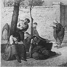 - A. Gautier, grav. B. Derousse, « Les Folles de la Salpêtrière », [s.n.], [s.l.], entre 1900 et 1910, estampe pointe sèche bleue, 21,8 × 27,3 cm, détail.