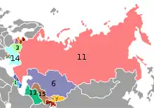 Les États post-soviétiques (ou postsoviétiques), également connus sous le nom d'ex-Union soviétique[1], d'anciennes républiques soviétiques et en Russie comme l'étranger proche (en russe ближнее зарубежье, blijnéié zaroubiéjié), sont les 15 États souverains qui succèdent à des républiques fédérées de l'Union soviétique, apparus après la dissolution de cette dernière en 1991.