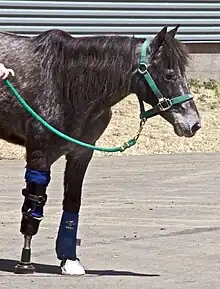 Dans le cadre du débat éthique, une modification du statut légal du cheval est souvent demandée. La notion de bien meuble est jugée inadaptée et insultante pour les animaux, parce qu'elle induit une confusion entre un être sensible et un objet. En Allemagne et en Autriche, le droit civil précise depuis les années 2000 que les animaux, dont les chevaux, ne sont pas des « choses » ni des objets[47]. En France, le cheval reste reconnu sous le régime des biens, mais le code civil, le code rural et le code pénal reconnaissent son caractère sensible depuis 2015[48]. L'existence d'un statut juridique pour les chevaux permet une protection légale, notamment parce qu'il fournit un cadre pour des procédures en cas de maltraitance ou de vol. Les chevaux qui ne bénéficient d'aucun statut légal parce qu'ils n'appartiennent à personne, comme les Brumbies d'Australie, ne sont protégés en rien et peuvent être légalement abattus ou empoisonnés par quiconque[49]. Cet aspect a motivé la création d'un statut juridique pour les Mustangs américains, qu'il est illégal de maltraiter ou de tuer en vertu du Wild and free-roaming horses and burros act de 1971[50].
