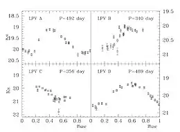 - (en) C. P. Nicholls, P. R. Wood, M.-R. L. Cioni et I. Soszyński, « Long Secondary Periods in variable red giants », Monthly Notices of the Royal Astronomical Society, vol. 399, no 4, , p. 2063 (DOI 10.1111/j.1365-2966.2009.15401.x, Bibcode 2009MNRAS.399.2063N, arXiv 0907.2975)