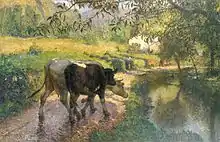 Répondant toujours au goût académique de l'époque, il aime peindre les animaux de la ferme et plus généralement les charmes de la vie champêtre.