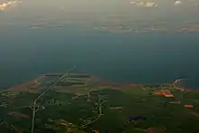 Vue aérienne du pont de la Confédération, avec l'île au sud-ouest