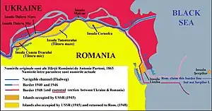 La délégation roumaine contesta ce point de vue, acceptant de céder la moitié du bras de Chilia jusqu'au talweg, comme en 1878. Dans la nuit du 25 au , à 1 heure, quatre moniteurs soviétiques débarquent des troupes sur les îles de Daleru Mare et de Salangic. Une courte bataille s'ensuivit, au cours de laquelle 6 garde-frontière roumains sont tués, les troupes roumaines étant forcées d'abandonner les îles, étant en infériorité numérique par rapport aux Soviétiques. Le 26 octobre, les troupes soviétiques occupent les îles de Tătaru Mare, Daleru Mic et Maican, et le 5 novembre, elles occupent l'île Limba dans le golfe de Musura. La délégation soviétique mit la Roumanie devant le fait accompli, occupant de force six îles sur le bras de Chilia, totalisant 23,75 km2. Ainsi, le bras de Chilia devenait soviétique, la ligne frontière étant déplacée unilatéralement au contact de la rive roumaine et sur le bras de Musura. Le ministère roumain des Affaires étrangères protesta à Moscou contre ce coup de force. Le sous-commissaire aux Affaires étrangères de l'URSS Andreï Vychinski déclara que ces îles « n'ont aucune valeur pour la Roumanie, mais sont très importantes pour l'URSS » et que « la Roumanie ne devrait pas s'obstiner dans une position que le gouvernement soviétique ne peut accepter »[7]. C'est en fait l'URSS qui s'« obstina » sur sa position jusqu'en janvier 1941 lorsque les Soviétiques présentent un ultimatum demandant à la Roumanie de leur céder tout le delta du Danube. L'URSS tente de s'emparer du port de Galați qu'un mouilleur de mines soviétique bloque, mais cette fois la marine fluviale roumaine réplique, tuant 26 soviétiques et perdant elle-même 85 marins. Sur un rappel à l'ordre de leur allié allemand, les soviétiques retirent leur ultimatum et s'en tiennent à la frontière tracée en octobre 1940[8].