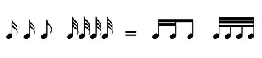 Le crochet peut être multiplié afin de diviser la durée de la note : on construit ainsi des doubles, triples et quadruples croches.