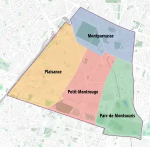 | Quartiers administratifs | Montparnasse (53) Parc-de-Montsouris (54) Petit-Montrouge (55) Plaisance (56) |