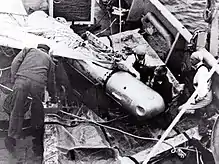 Repêchage d'une des bombes perdues par un Boeing B-52 lors de sa collision au large de Palomares en Espagne