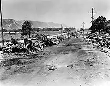 Le Boulevard Barbès à Paris après le bombardement, le .