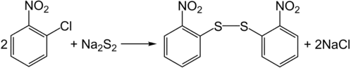 Lorsque le 2-chloronitrobenzène interagit avec le disulfure de sodium, il se forme du disulfure de 2,2'-nitrodiphényle, qui est utilisé pour la synthèse de l'acide orthanilique :