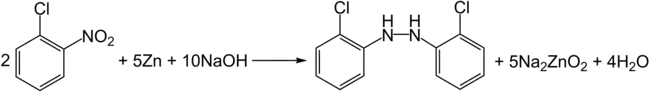 Lorsqu'il est réduit avec de la poussière de zinc en milieu alcalin, on obtient du 2,2'-dichlorohydrabenzène :