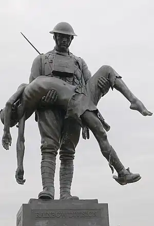 La 42e division d'infanterie, formée en , est formée de soldats issus de 26 états des États-Unis et du district de Columbia. Elle arrive en France durant le mois de et prend part aux derniers jours de la bataille de l'Aisne, à la seconde bataille de la Marne, à la bataille de Saint-Mihiel et à l'offensive Meuse-Argonne.