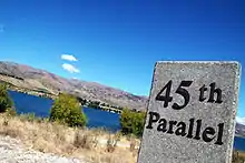 Le 45e parallèle sud correspond à une zone propice à la culture de la vigne, comme son équivalent dans l’hémisphère nord. Notamment en Nouvelle-Zélande et la région du Central Otago, les latitudes proches englobent aussi les vignobles d'Argentine, du Chili, et d'Australie (en Tasmanie)[7],[8].