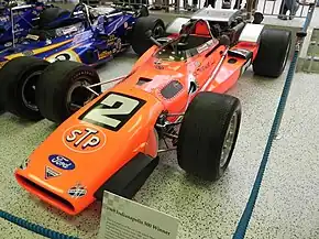 La Hawk-Ford de Mario Andretti, victorieuse de l'édition 1969 des 500 miles d'Indianapolis.