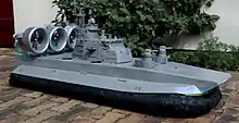 - la direction de la maquette peut être assurée par un système de gouvernails qui redirigent l'air propulsé par les hélices, ou bien en plaçant les moteurs de propulsion sur des pylônes orientables, comme c'est le cas sur l'aéroglisseur Britannique SRN4