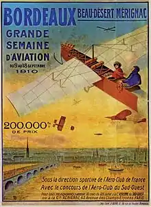 En 1910, une grande surface de landes est louée sur la commune de Mérignac, au lieu-dit Beau-Désert, afin d'y organiser une grande semaine d'aviation qui connut un grand succès. Pour y participer, le pilote péruvien Bielovucic réalise le premier vol Paris-Bordeaux : trois étapes en trois jours et sept heures.