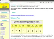 Note : Vérifiez que votre navigateur accepte bien l’Unicode ; dans le cas contraire, vous verrez s’afficher des rectangles blancs ou des points d’interrogation à la place des caractères APL. Cette question est détaillée sur la Toile[9]. Aujourd'hui (2017) les navigateurs sur PC comme Mozilla Firefox ou Microsoft Edge ne posent aucun problème pour afficher les caractères APL en Unicode. Quelques problèmes d'affichage résiduels subsistent encore sur tablettes Android.