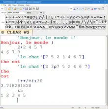Ainsi pour écrire « Hello, World! » en APL, les choses se passent ainsi :