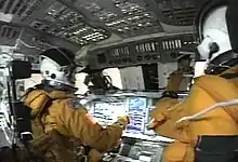 - 8 h 10 — Le directeur de vol communique à la navette l'autorisation de désorbitation.