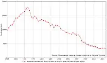 Depuis 2001, on a constaté une accélération du processus avec des baisses successives de :