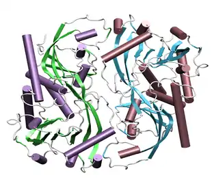 En 1951, Irwin Clyde Gunsalus et Willis A. Wood ont isolé de l'enterococcus faecalis une racémase de l'alanine, enzyme qui catalyse la racémisation de la L-alanine naturelle[55]. Le gène alr qui code la racémase de l'alanine est présent chez toutes les bactéries[56]. La D-alanine formée à l'aide de la racémase de l'alanine est essentielle pour la synthèse des peptidoglycanes chez pratiquement toutes les bactéries[57]. Outre la D-alanine et le D-glutamate, on trouve aussi chez certaines espèces d'entérocoques de la D-sérine dans la paroi cellulaire[58],[59]. Cette D-sérine y forme avec la D-alanine à l'extrémité C-terminale un dipeptide D-Ala-D-Ser, qui est responsable de la résistance de ces espèces de bactéries aux glycopeptides, comme la vancomycine[60],[61].