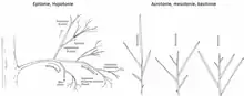 Ramifications hypotone, épitone, acrotone, mésotone, basitone.