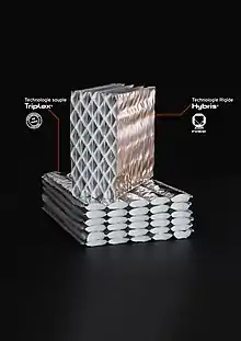 En mars 2016, la technologie Triplex est commercialisée pour les isolants alvéolaires souples, avec des résistances thermiques certifiées[11]. Les isolants alvéolaires souples sont notamment destinés à l'isolation thermique par l'extérieur (toitures, façades sous bardage rapporté et ventilé) et aux travaux de rénovation. La technologie alvéolaire se décline en plusieurs épaisseurs selon le niveau de résistance thermique recherché pour chacune des applications (toitures, murs et combles).