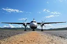 Fokker F50 d'Aero Mongolia à l'aéroport de Mörön en 2006.