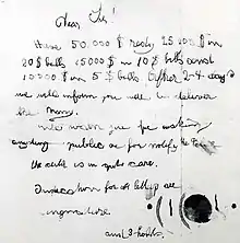 Un mois après l'enlèvement, le , Condon reçut une lettre dans laquelle les ravisseurs se disaient prêts à encaisser la rançon.