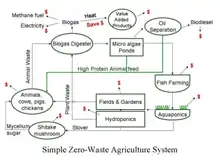 L'agriculture zéro déchet combine des pratiques agricoles écologiques matures qui offrent un équilibre intégré de création d'emplois, de lutte contre la pauvreté, de sécurité alimentaire, de sécurité énergétique, de conservation de l'eau, de lutte contre le changement climatique, de sécurité des terres et d'intendance.