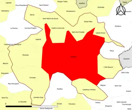 Localisation de l'aire d'attraction de Lectoure dans le département du Gers. | |