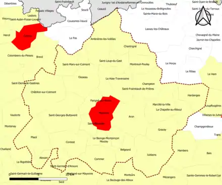 | Saint-Mars-sur-Colmont | 53237 | Mayenne | commune de la couronne | 16,39 | 445 (2021) | 27 |