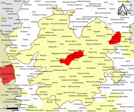 Localisation de l'aire d'attraction de Verdun dans le département de la Meuse. | |