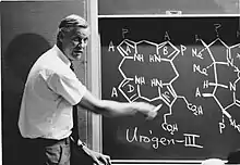 - Cf. A. R. Battersby, « How Nature builds the pigments of life », Pure and Applied Chemistry, vol. 65, , p. 1113-1122 (DOI 10.1351/pac199365061113, lire en ligne [PDF])