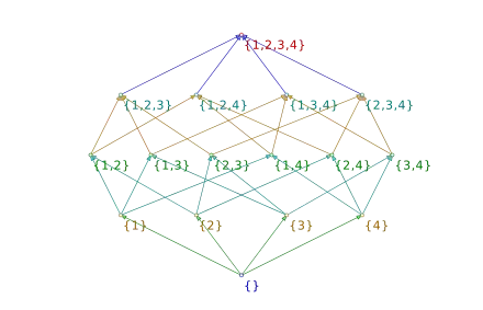 Une partie du graphe de l'algèbre de Boole correspondante est représentée dans le diagramme de Hasse de la figure 1.