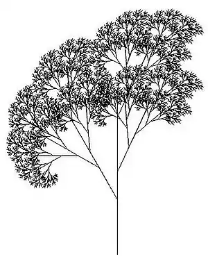 - Les fractales ont cette propriété d'autosimilarité, mais elles ont plutôt à voir avec le concept un peu différent qui s'appelle la corécursivité (en) (ou corécursion). Le tapis de Sierpiński, du nom de Wacław Sierpiński, est une fractale obtenue à partir d'un carré. Le tapis se fabrique en découpant le carré en neuf carrés égaux avec une grille de trois par trois, et en supprimant la pièce centrale, et en appliquant cette procédure récursivement aux huit carrés restants.