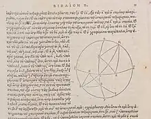 Le texte du manuscrit Gr303 (celui que Bessarion avait transmis à Regiomontanus) est imprimé par J. Walder à Bâle en 1538 : cette editio princeps contient l'Almageste éditée par S. Grynaeus, ainsi que, édités par J. Camerarius, les commentaires de Théon d'Alexandrie (livres I ; II ; IV ; VI-XIII), de Pappus d'Alexandrie (livres V et VI), et du théologien byzantin du XIVe s. Nicolas Cabasilas (livre III). Adolphe Rome[4] donne quant à lui les commentaires de Théon d'Alexandrie aux livres I à IV, et ceux de Pappus aux livres V et VI. Parmi les commentateurs anciens de l'Almageste, il faut encore nommer Ammomius (œuvre perdue), et probablement Hypatie fille de Théon d'Alexandrie, qui en éditant l'œuvre de ce dernier y aurait apporté des corrections.